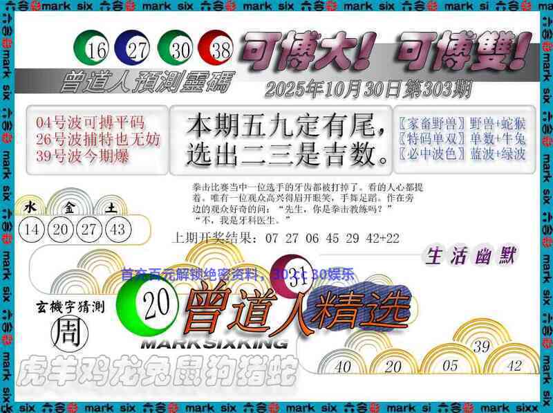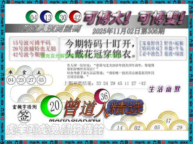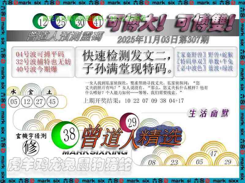 307期:男女二肖【女肖+马狗】开:狗20准