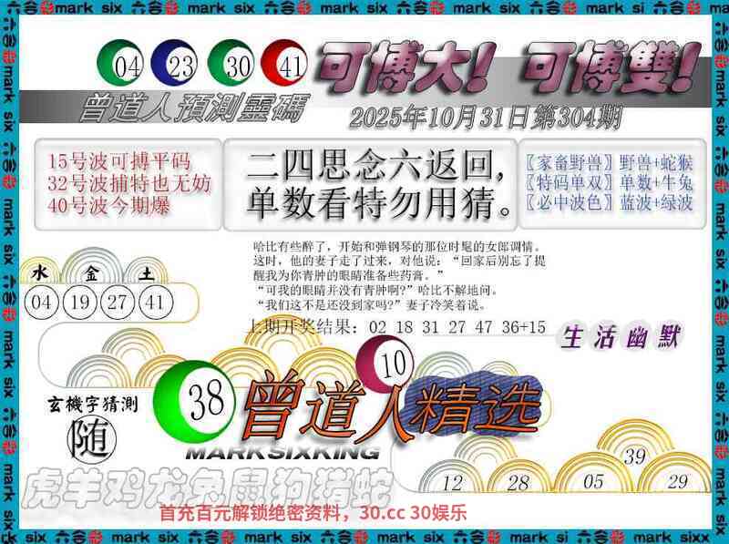 303期:男女二肖【男肖+兔鸡】开:兔15准