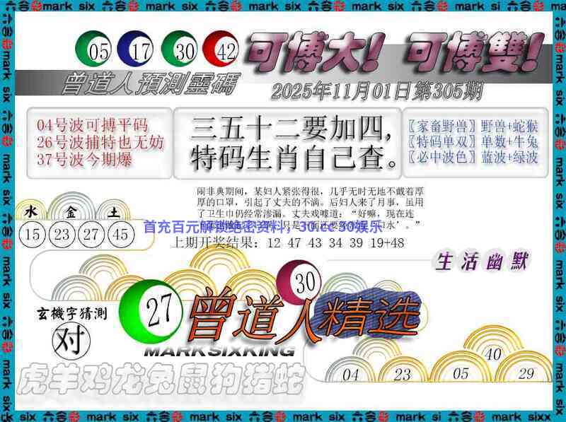 305期:男女二肖【男肖+蛇兔】开:鼠42准
